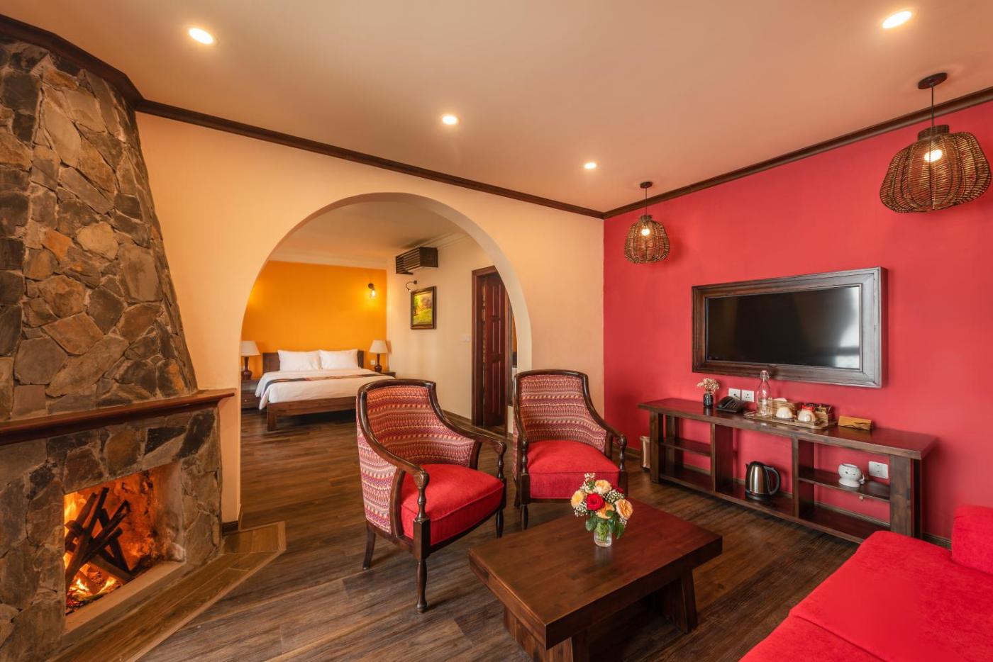 Two-Bedroom Sky Villa with Mountain View. Guests will have a special experience as this villa features a fireplace. This villa is comprised of 1 living room, 2 separate bedrooms and 2 bathrooms with a walk-in shower and free toiletries. Featuring a terrace with garden views, this villa also offers air conditioning and a flat-screen TV with cable channels. The unit offers 3 beds. ;